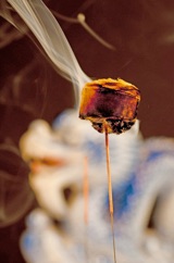 Es gibt Krankheitsbilder bei denen es sinnvoll ist, bestimmte Körperareale oder Akupunkturpunkte mit Wärme zu reizen, die so genannte Moxibustion. Dazu nimmt man Moxakraut, welches es in verschiedenen Formen gibt. Das Moxakraut besteht aus den getrockneten Blättern der Artemisia vulgaris, dem Beifuß, der die Eigenschaft besitzt, dass seine Hitze tief in den Körper eindringt und damit die Zirkulation von Qi und Blut stimuliert. Für Tiere verwende ich gerne Moxa-Zigarren oder Moxa-Stäbchen.